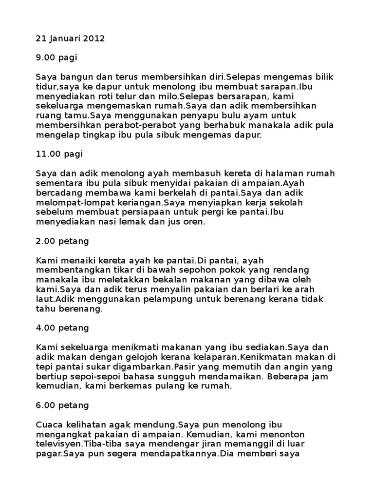 PengalamanBerkelah di Pantai Merdeka. Adikku membantu ibu menyediakan makanan. Contoh Karangan Catatan Upsr Cute766.